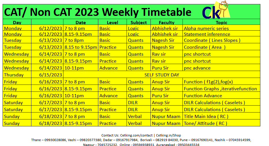 CAT 2023 Timetable Targets – Weekend Batch
