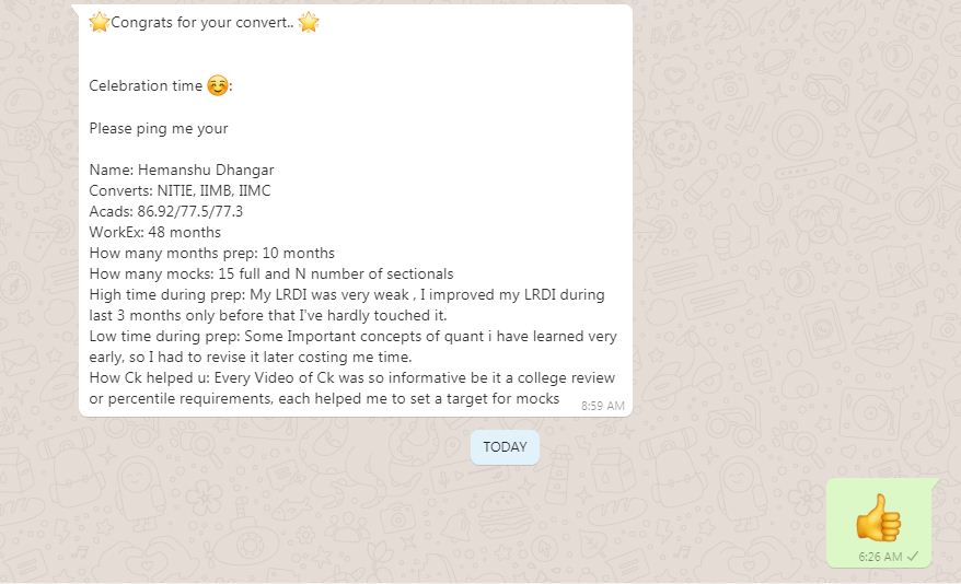 The Candidate has Said that Every Video of Ck was so informative be it a College review or Percentile Requirements, Each of which helped him to set a target for mocks.About IIM Bangalore: