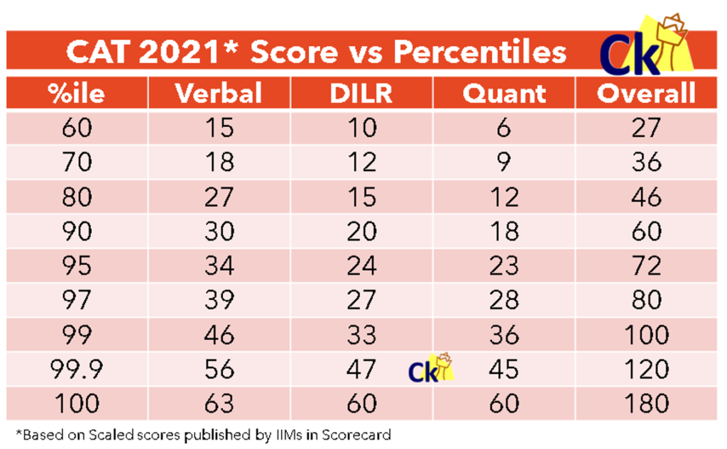 CAT 2021 Score vs Percentile – Overall – Reference.