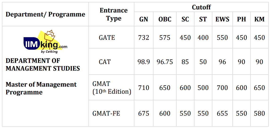 IISc bangalore Cutoffs for MBA via CAT Exam for Open Category will be approximately 99%ile