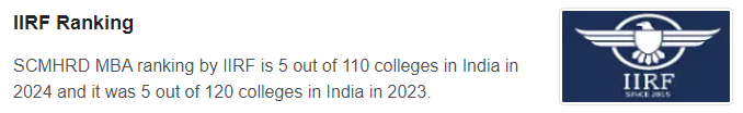 Symbiosis Centre for Management & Human Resource Development (SCMHRD) offers 2 years full-time programs in the MBA segment, which includes a general MBA, an MBA in Infrastructure Development and Management, and an MBA in Business Analytics. The Admission Procedure for the batch 2024 is based on SNAP scores, Written Ability Test, Group Exercise, and Personal Interaction.