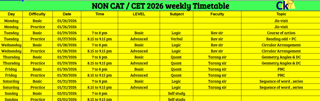 CAT 2025 | CET 2025 | Non CAT Exams | Timetable Target